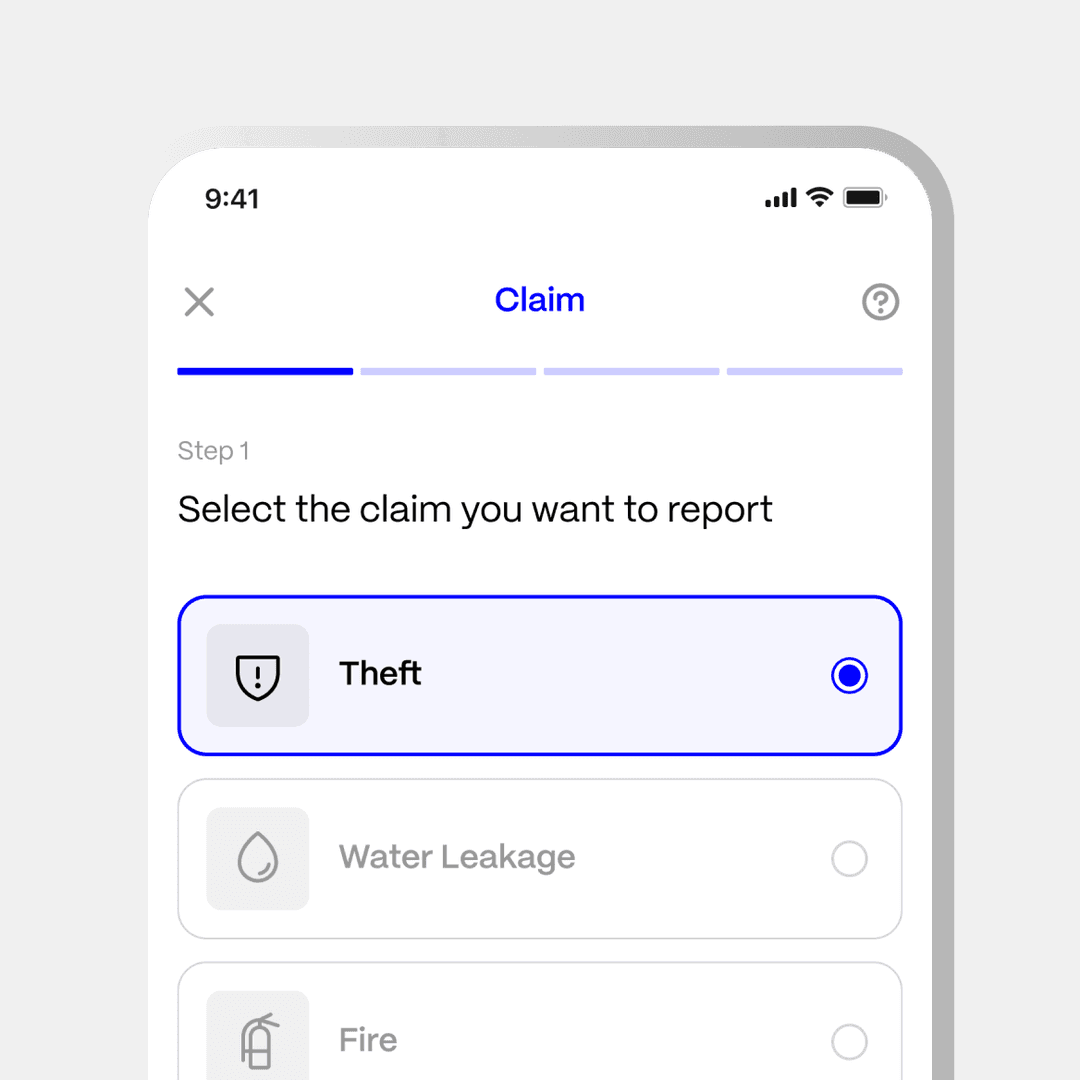 The app features a dedicated workflow for each claim type.